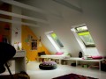 Компания VELUX – не только мировой лидер в изготовлении мансардных окон. Оказывается, специалисты компании давно разрабатывают различные солнцезащитные системы для своих окон. Все эти энергоэффективные разработки направлены на защиту мансардных помещений от избыточных солнечных лучей летом и удержание тепла в помещении зимой. Аксессуары для солнцезащиты могут быть внешними и внутренними. К внешним солнцезащитным системам относят маркизет и защитную роллету. Маркизет является одним из самых распространённых аксессуаров . Его эффективная солнцезащита обеспечивается тем, что до 90% солнечных лучей задерживается снаружи и, таким образом, не нагревают помещение. Более того, температура воздуха в помещении, при этом, даже уменьшается на 5 градусов! Если же помещение необходимо затенить полностью - используется защитная роллета. Кроме солнцезащитных функций (уменьшает жару на 95%), она обеспечивает дополнительную звукоизоляцию помещения и эффективно держит тепло внутри в холодное время года. Внутренние солнцезащитные аксессуары – это рулонные шторы и шторы-плиссе для мансардных окон. Это весьма технологичные и практичные системы. В зависимости от вида выбранной ткани, можно либо полностью затемнить помещение, либо просто рассеивать прямой солнечный свет. В ассортименте есть ткани со специальным покрытием, отражающим солнечные лучи. Есть энергоэффективные шторы-плисе VELUX FHC, внутренняя поверхность ткани в которых имеет алюминиевое покрытие, обладающее теплоизоляционными свойствами. Такие шторы предохраняют помещение от перегрева летом и сохраняют тепло внутри помещения зимой. Неоспоримым достоинством жалюзи для мансардных окон от VELUX является возможность их самостоятельной установки, благодаря наличию системы Pick&Click. Нужно помнить, что наибольший эффект даст комбинация на одном окне внешней и внутренней солнцезащиты. Например – маркизет снаружи и штора-плиссе изнутри. И, наконец, все солнцезащитные системы Велюкс могут управляться либо вручную, либо с помощью пульта дистанционного управления электроприводом, который может быть запитан от существующей сети 220 В или от солнечной батареи. Фотогалерея: