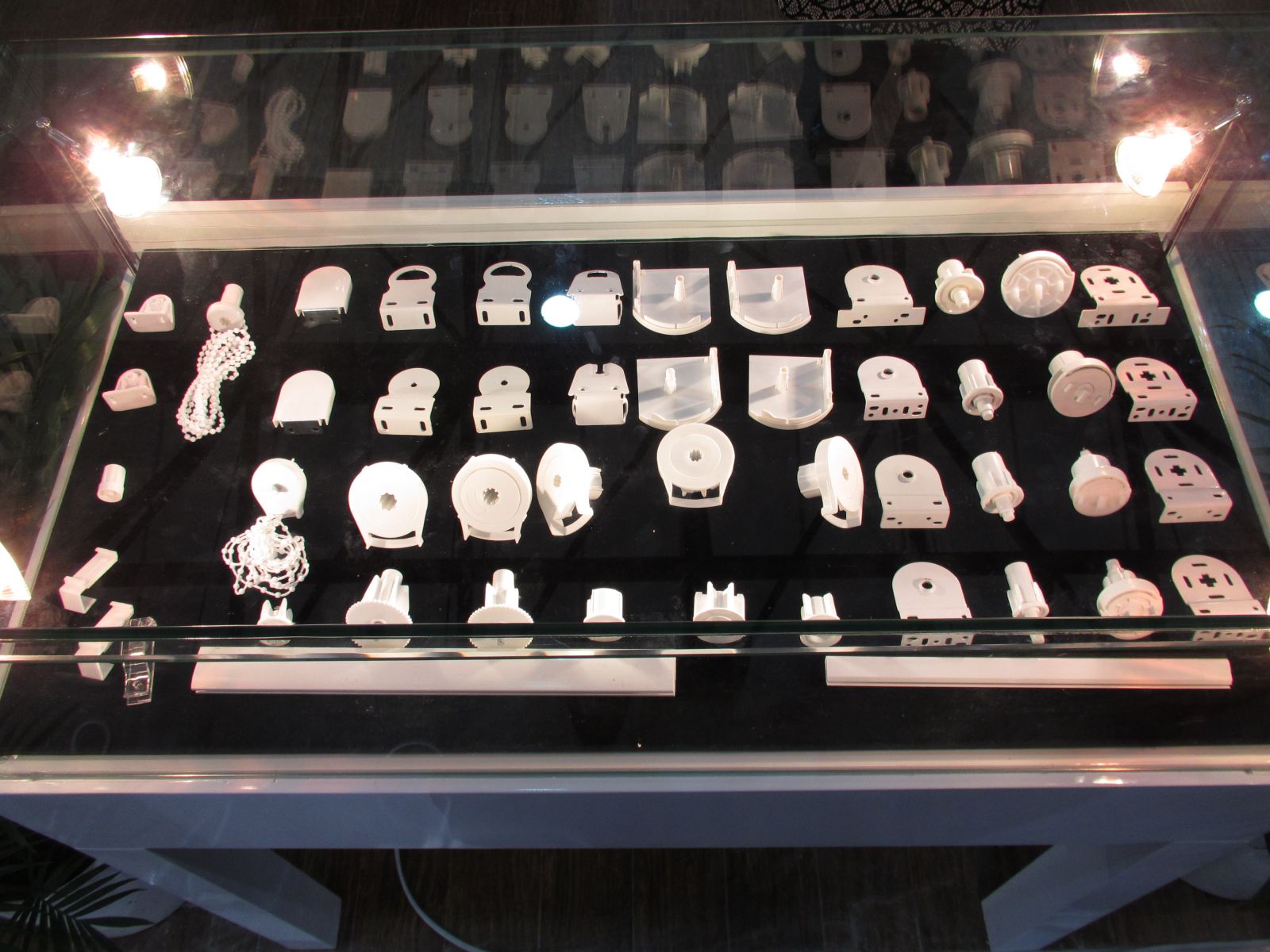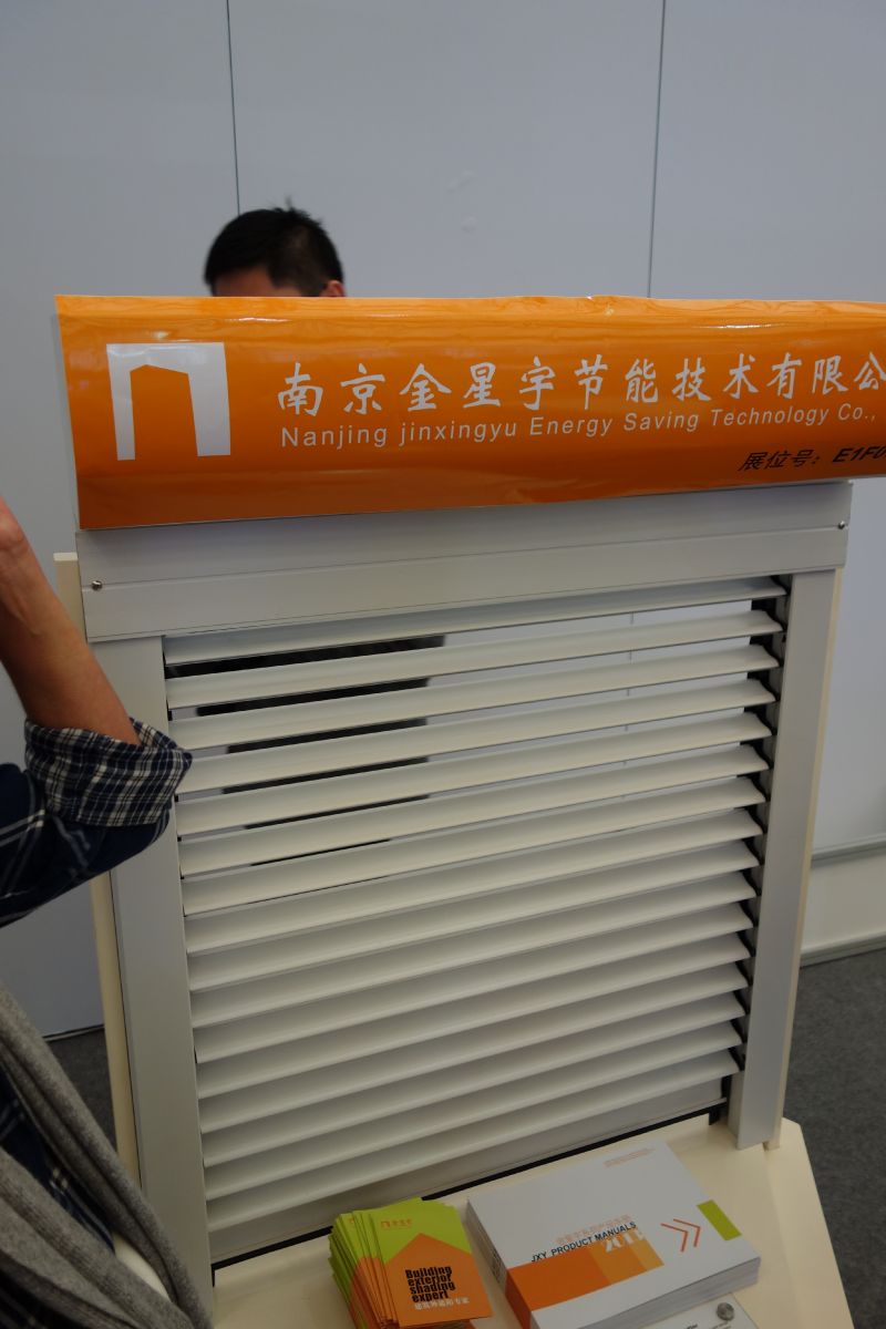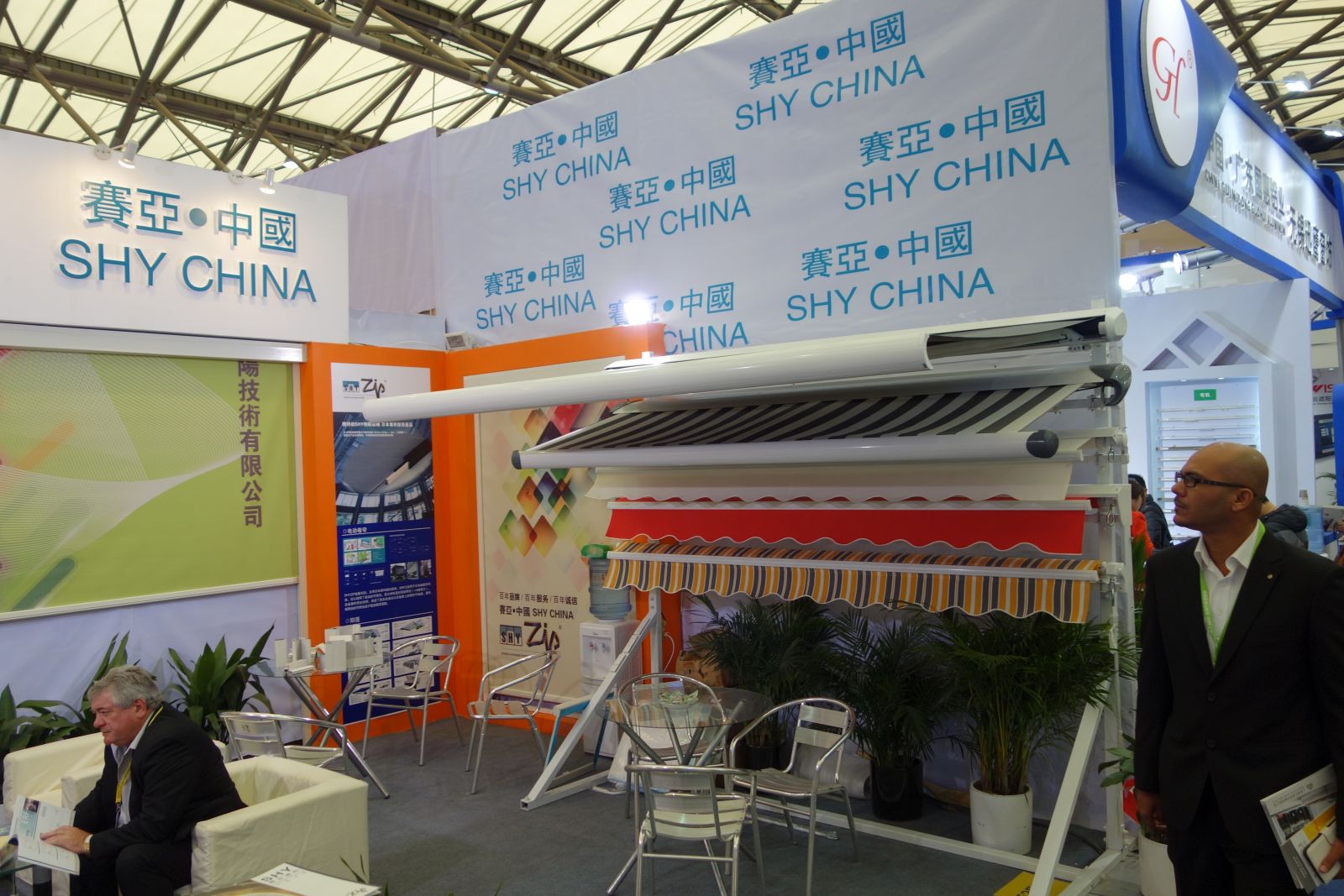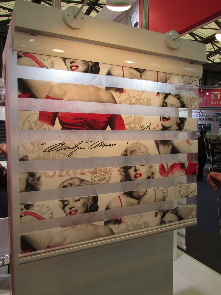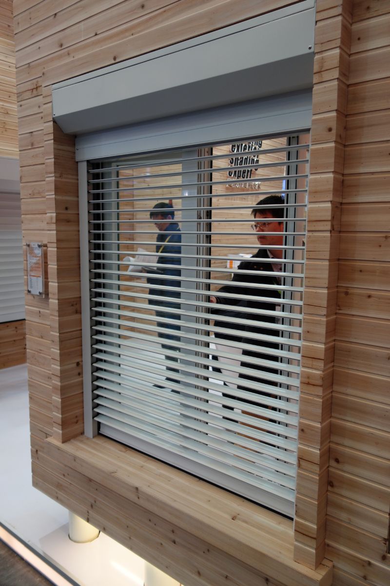 Ну, а теперь – немного об интересных продуктах, представленных на выставке в этом году. Что касается наружной солнцезащиты – много маркиз и защитных ролет, особенно китайского производства. Из интересного – система защитных ролет с поворотными ламелями, позволяющими регулировать уровень освещённости. Или вертикальные металлические ламели с перфорацией – прочно и пропускает свет. У нас пока таких систем нет. Во всяком случае, мы о компаниях, предлагающих такие продукты, не знаем.