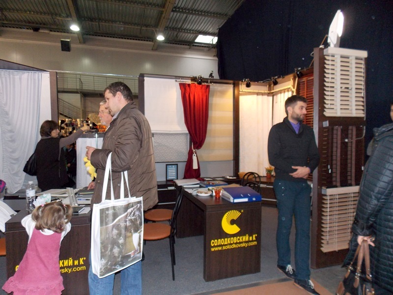 Основной же тематикой на стендах компании были шторы и различные аксессуары к ним. Поэтому основная масса новинок была именно из этой области. Что до солнцезащиты, то нам продемонстрировали новый вид деревянных жалюзи, которые теперь будет выпускть «Солодковский и К». А дальше – всё традиционно: рулонные шторы, шторы-плиссе, «День-Ночь»…