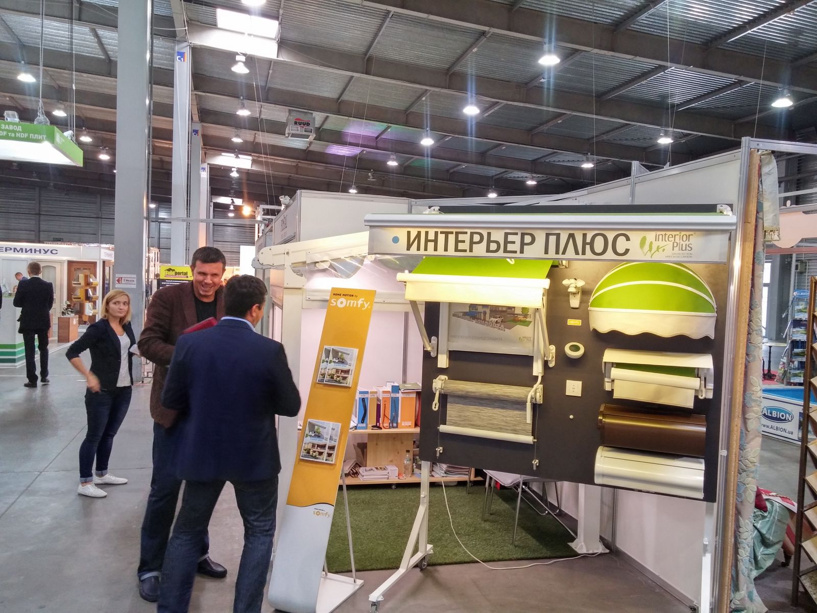 В павильоне - небольшой стенд с наружной солнцезащитой компании "Интерьер Плюс".