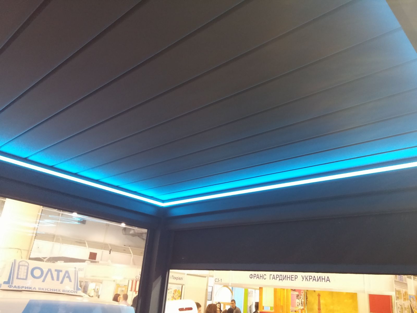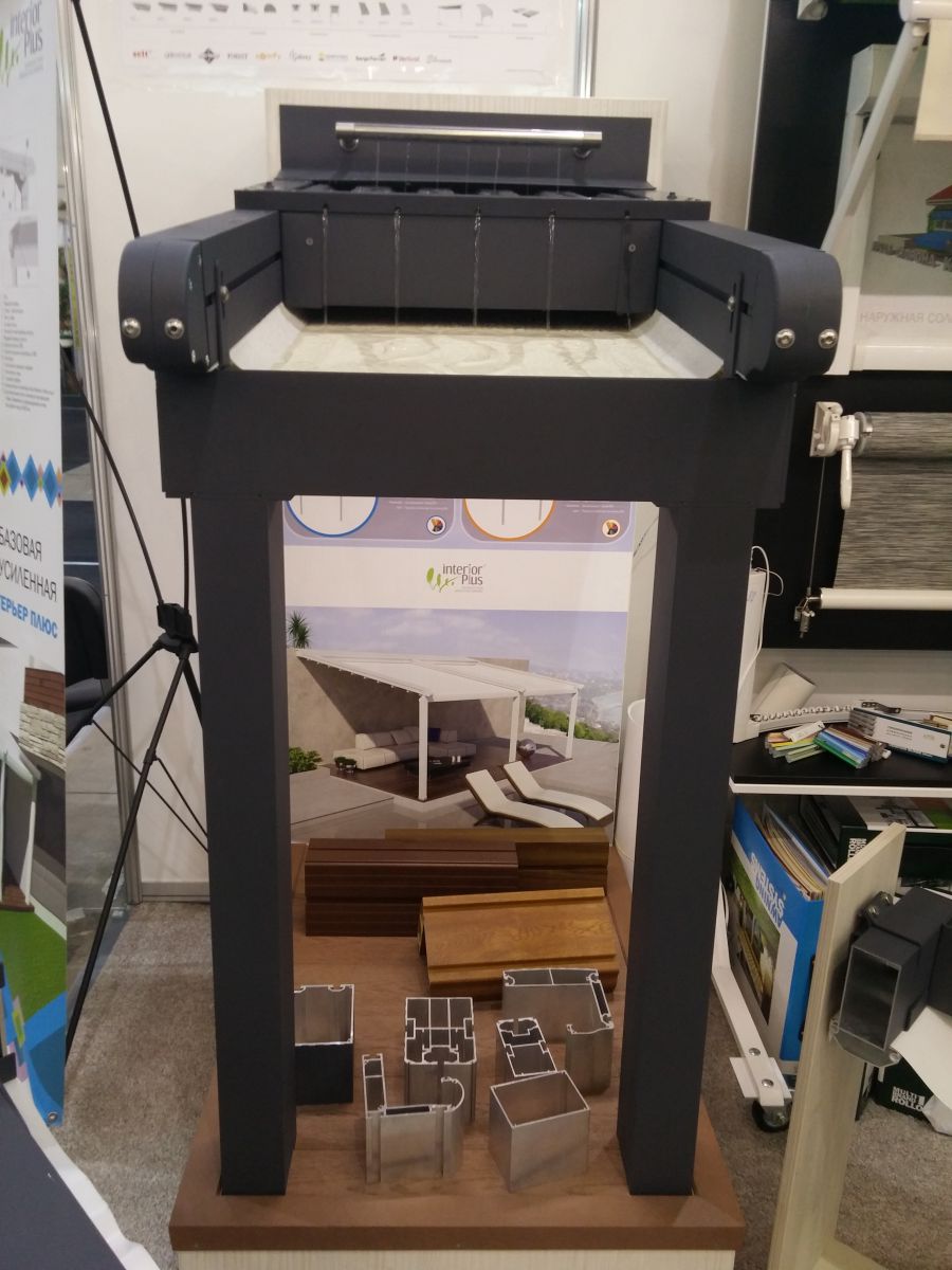 Интерьер Плюс на выставке KyivBuild 2016 Компания Интерьер Плюс на выставке KyivBuild 2016 Системы внешней солнцезащиты на стенде компании Интерьер Плюс на выставке KyivBuild 2016 Наглядный образец системы водостоков в перголе компании Интерьер Плюс
