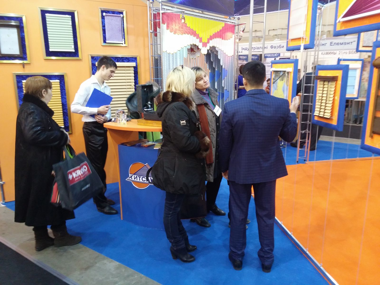 Стенд компании Хитсан Продукция компании Хитсан на выставке KyivBuild 2016 Фотопечать на вертикальных жалюзи - стенд компании Хитсан на выставке KyivBuild 2016 Ассортимент изделий компании Хитсан