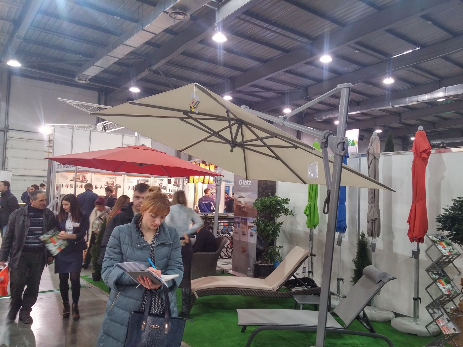 Кроме этого, увидели стенд компании "Линия комфорта" и такие вот красивые зонты Glatz.