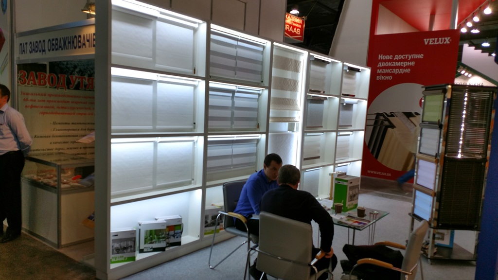 стенд компании Интерьр плюс шторы-плиссе интерьер плюс