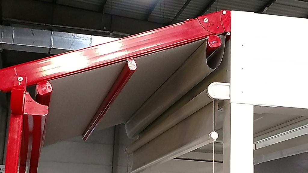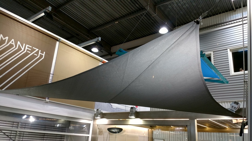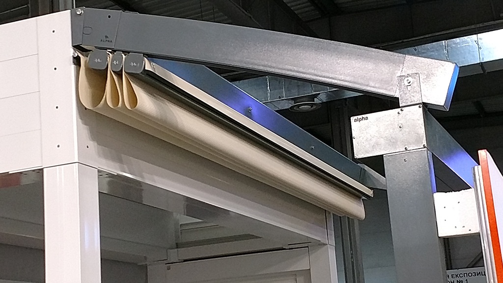 пергола компании sunny системы и ткани компании coulisse на стенде компании sunny