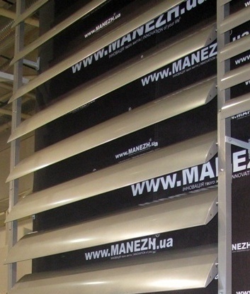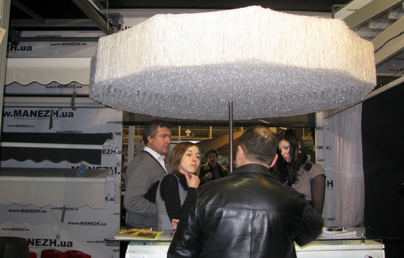 Это, прежде всего, карнизы для штор с электроприводом корейского производства. Было представлено несколько модификаций этих карнизов. Управление шторами на таких карнизах может осуществляться либо с настенного переключателя, либо с дистанционного пульта, либо быть интегрированным в систему «Умный дом». Другой интересной новинкой на стенде была конструкция, напоминающая террасную маркизу типа «Пергола», но изготовленная из ткани для штор и использующаяся внутри помещения. Поражал воображение ассортимент представленной продукции на стенде другой известной украинской компании-производителя, черкасской фирмы «Манеж».